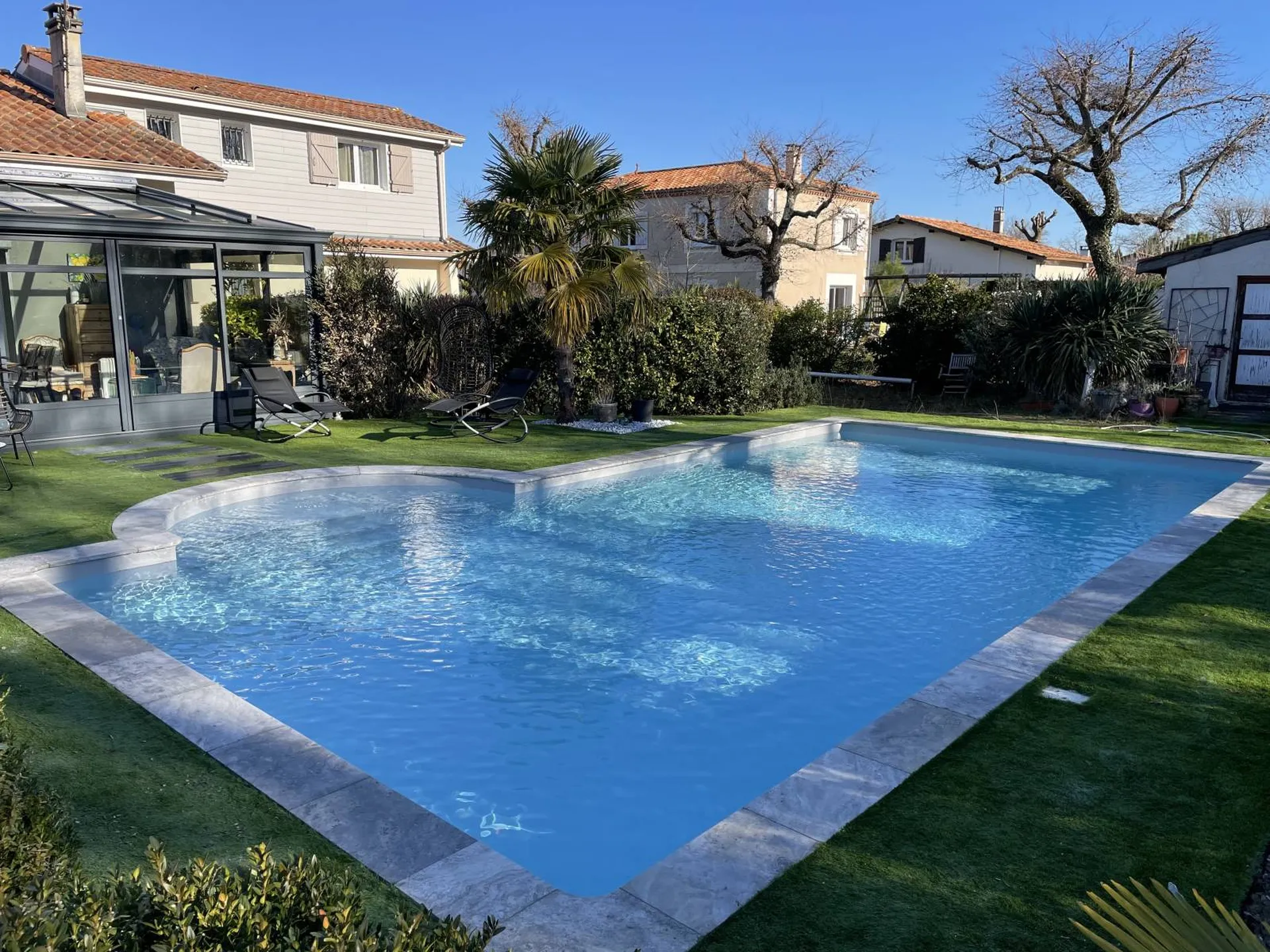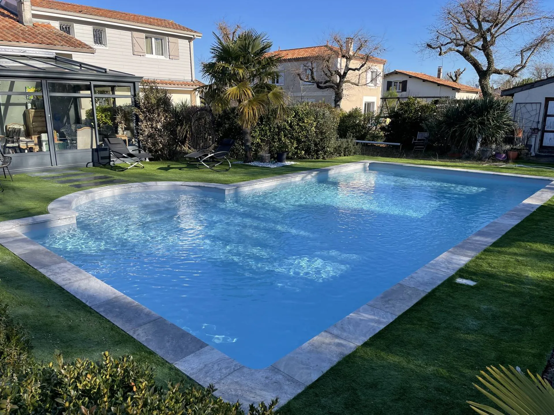 Ces pierres naturelles donneront du charme et du caractère à votre piscine. Vous retrouverez des nuances de gris qui peuvent légèrement tendre sur le beige (toutes les margelles sont nuancées). Ces margelles en travertin gris, s'associent aussi bien avec un dallage de même nature autour (40,6x61 ou opus 4 formats par exemple) qu'avec du gazon synthétique en finition.
