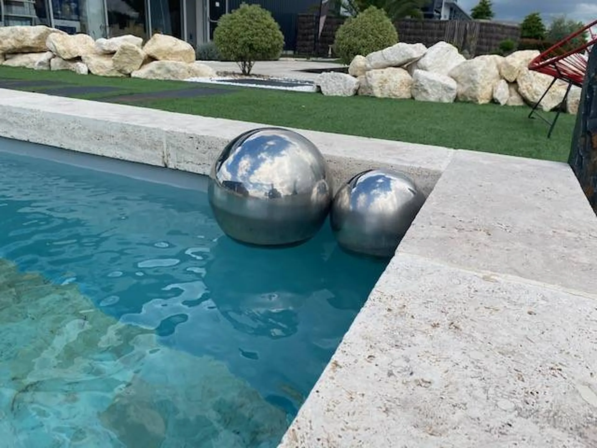 En complément, nous offrons également des sphères en inox qui sont spécialement conçues pour la décoration de votre piscine. Disponibles dans les mêmes diamètres de 20 cm, 30 cm, et 40 cm, ces sphères inoxydables apportent une touche de modernité à votre plan d'eau. Choisir des sphères de différents diamètres peut créer un effet esthétique très agréable, ajoutant de la dimension et du relief à votre espace aquatique. Grâce à leur surface brillante, ces sphères produisent de magnifiques jeux de lumière qui mettent en valeur votre piscine, transformant celle-ci en un véritable oasis de détente et d'élégance.