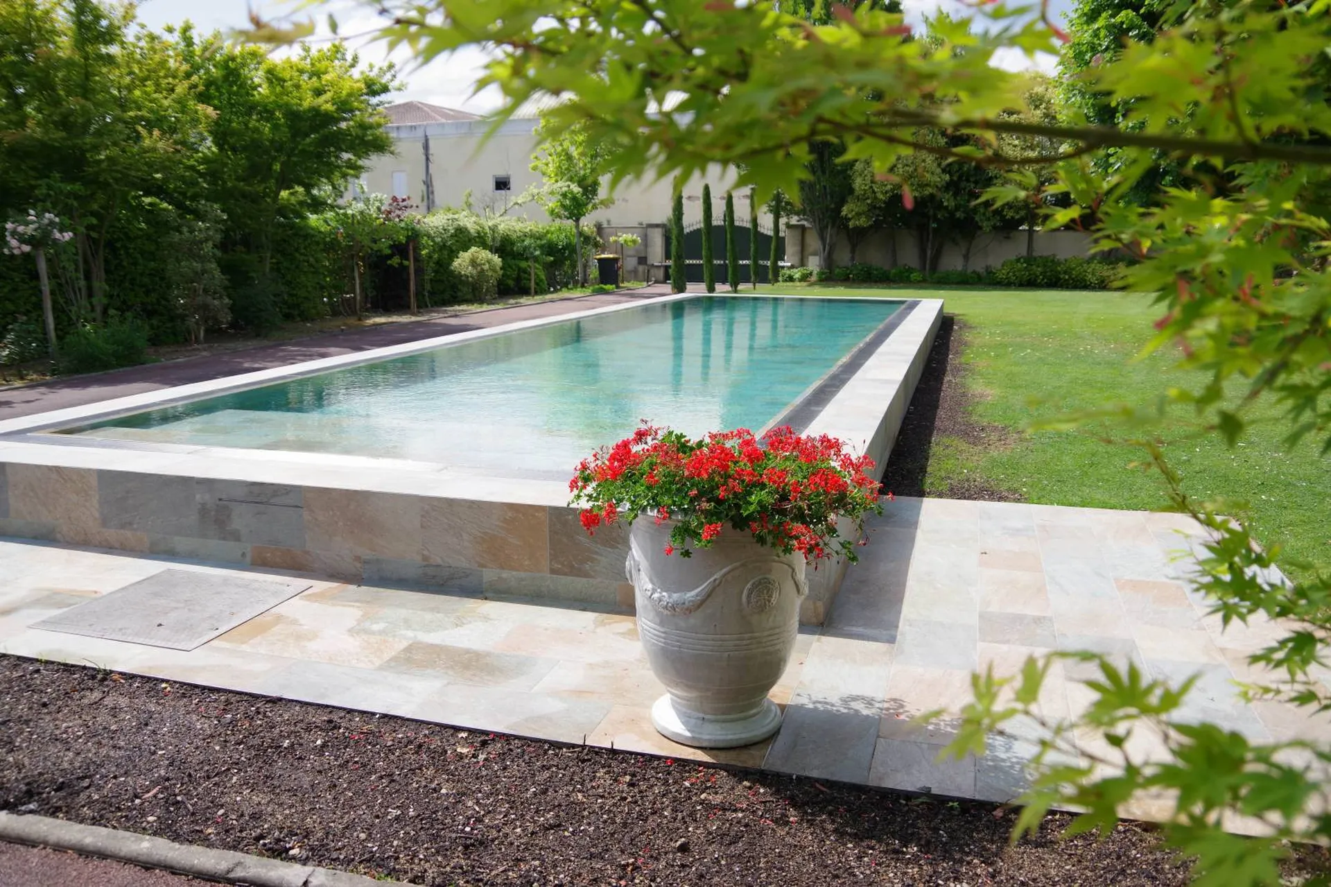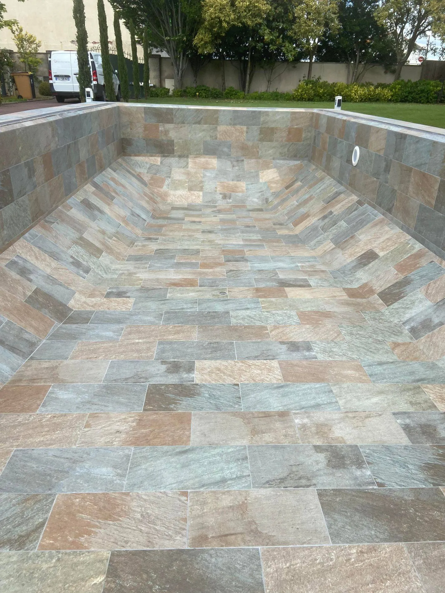 Ce type de carrelage, composé de grès, résiste en effet très bien notamment aux produits chimiques nécessaires à l'entretien de la piscine, mais aussi aux changements brusqués de température et au gel l'hiver.