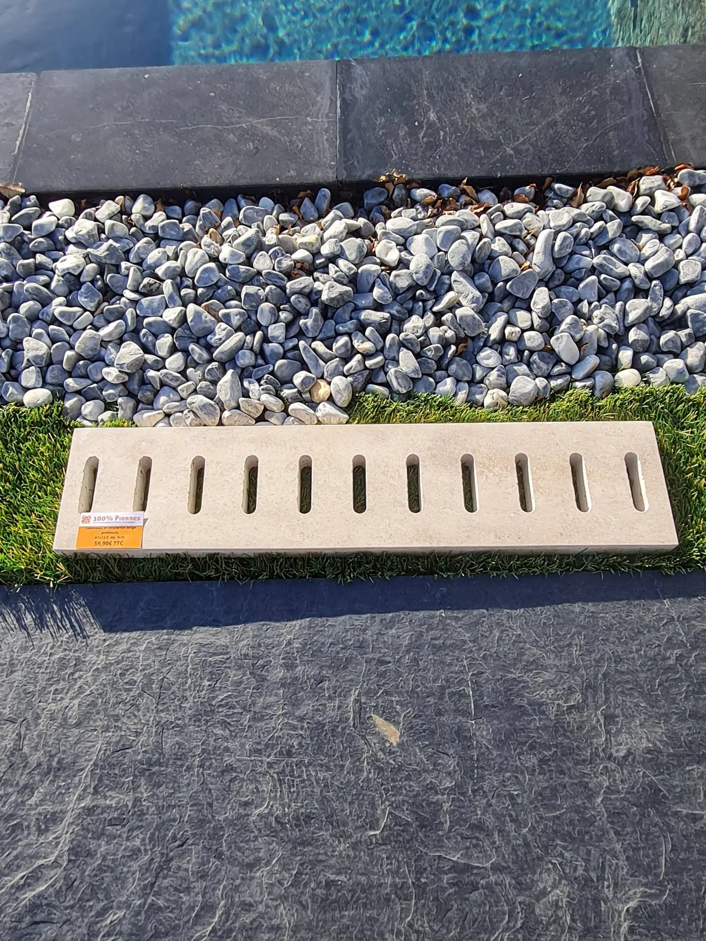Ce caniveau percé en pierre naturelle, sublimera à coup sûr votre extérieur.