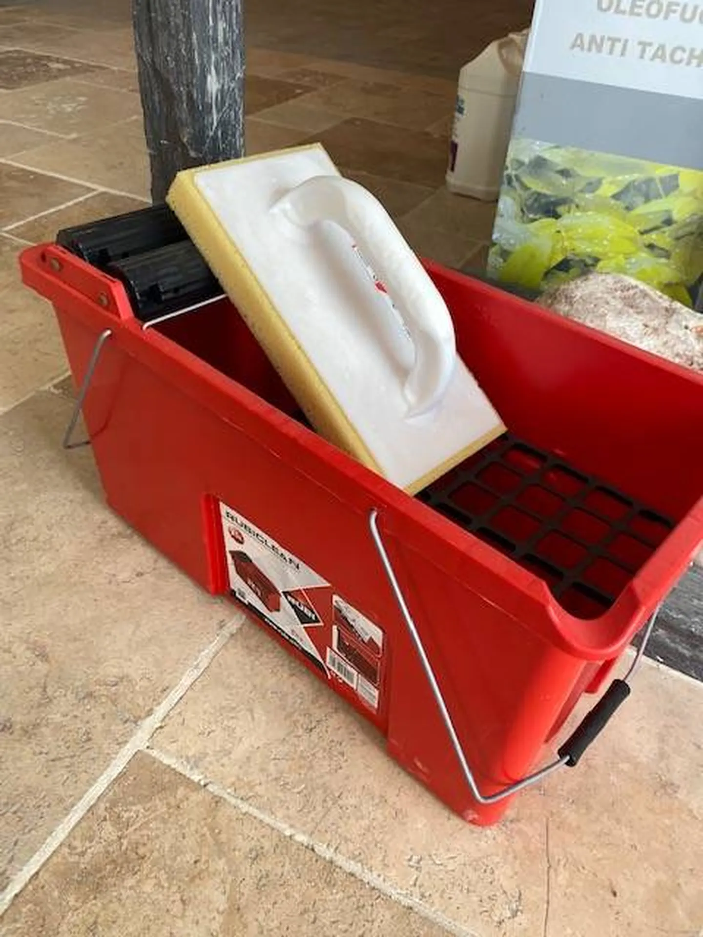 En effet, nous commercialisons des bacs de nettoyage ainsi que des taloches éponges de la marque RUBI. Le bac RUBICLEAN PRO est idéal pour le nettoyage de tout type de surfaces. Il est particulièrement recommandé pour le nettoyage postérieur aux travaux de pose de carreaux céramiques ou encore en pierres naturelles. Il est équipé de 2 rouleaux égoutteurs striés et de grande résistance pour faciliter l'égouttage et obtenir ainsi une plus grande évacuation de l'eau en laissant les éponges avec le niveau d'eau optimal.