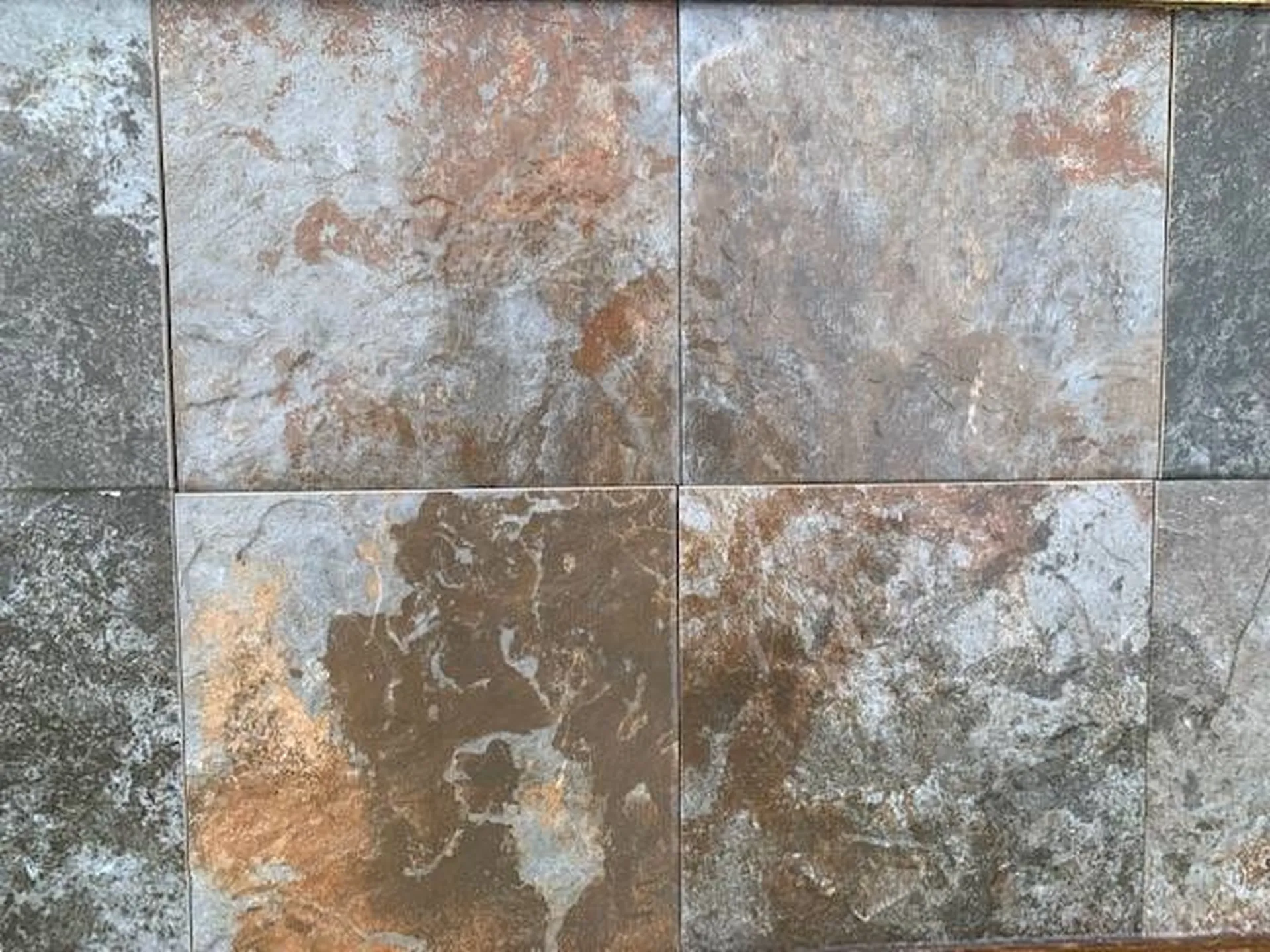 La seconde, est le multicolor foncé avec des nuances de gris anthracite, de rouille et du veinage plutôt ocre. Cette référence existe aussi bien en 23.4x23.4 qu'en 23.4x47.2.