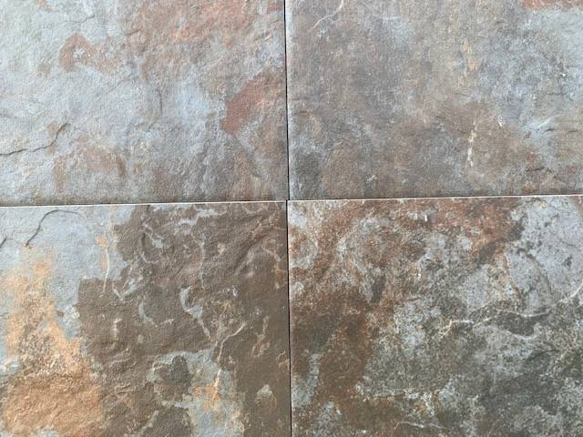 La seconde, est le multicolor foncé avec des nuances de gris anthracite, de rouille et du veinage plutôt ocre. Cette référence existe aussi bien en 23.4x23.4 qu'en 23.4x47.2.