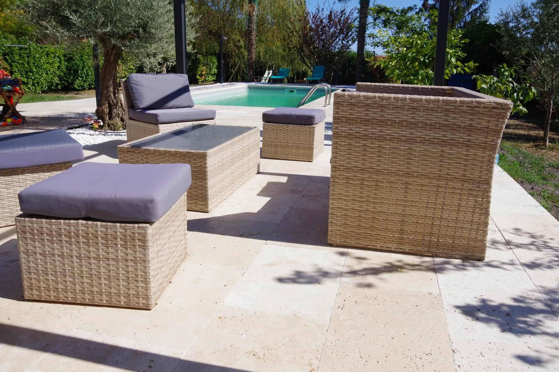 La couleur du travertin beige reste plutôt claire et homogène. De ce fait, la pierre ne garde pas la chaleur, vous pouvez donc la poser en terrasse sans problème.