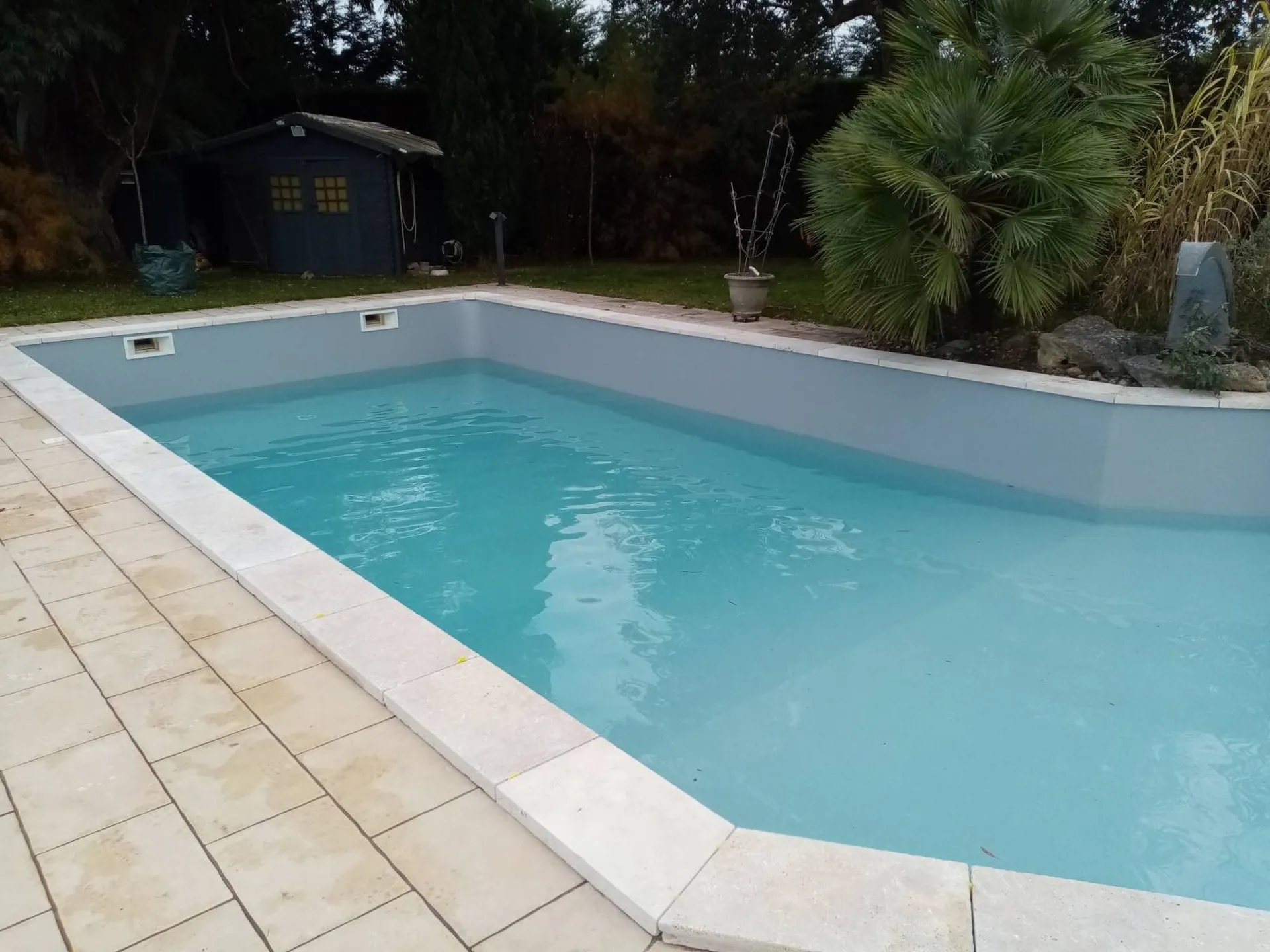 Pour cette rénovation, le client a également choisi de changer son liner, en le prenant en gris et de choisir l'entreprise AQUA 33.