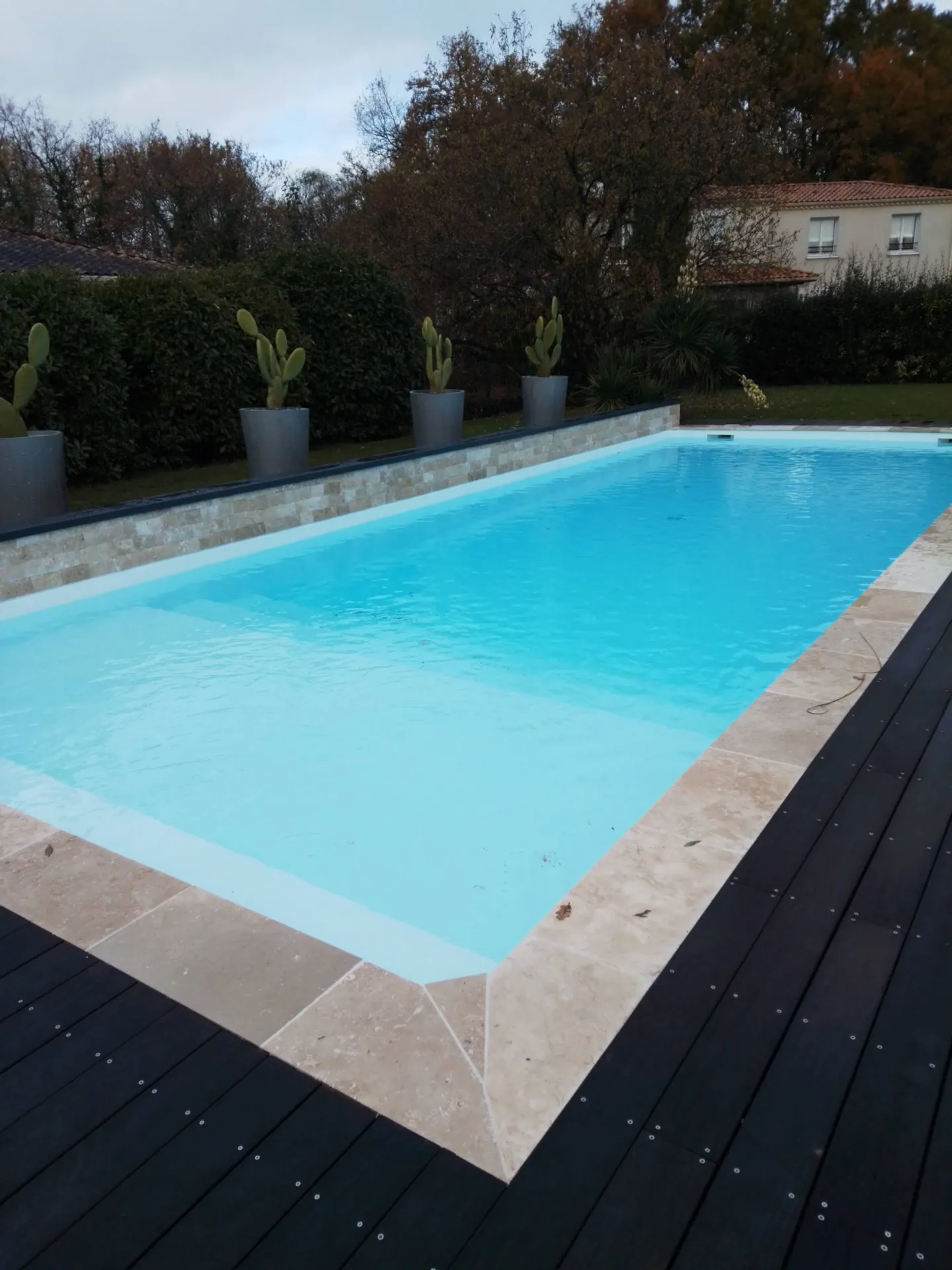 Enfin, l'entreprise Aqua 33 à Ambarès et Lagrave est venu pour changer l'ancien liner et en mettre un nouveau de couleur blanc. La couleur de l'eau est juste sublime, l'intervention des trois entreprises dans leur domaine respectif a bien fonctionné.