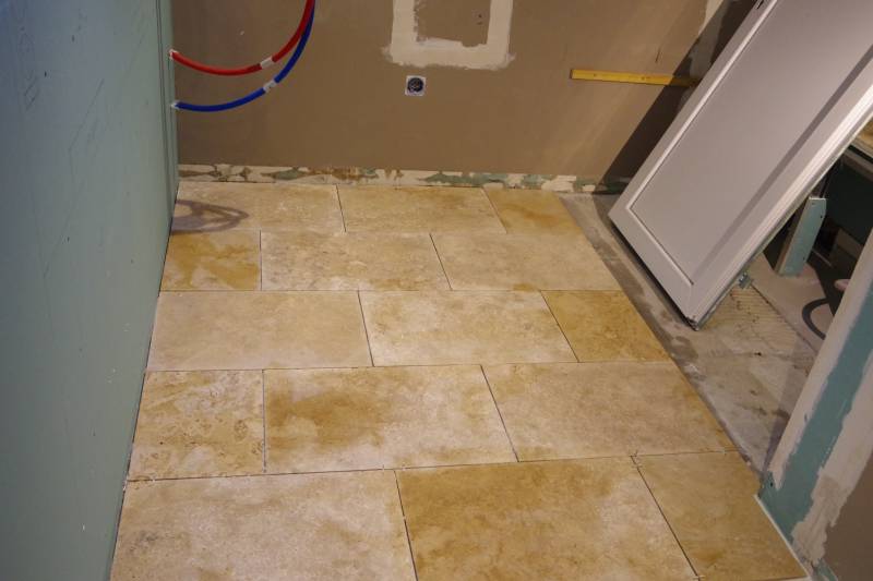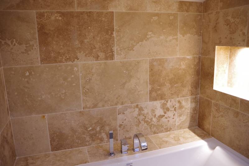 Poser du travertin mix dans une salle de bain en Gironde